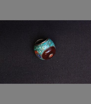 Anello manifattura Newbari (Nepal - Tibet), corallo, lapislazzuli, turchese, resina e argento.