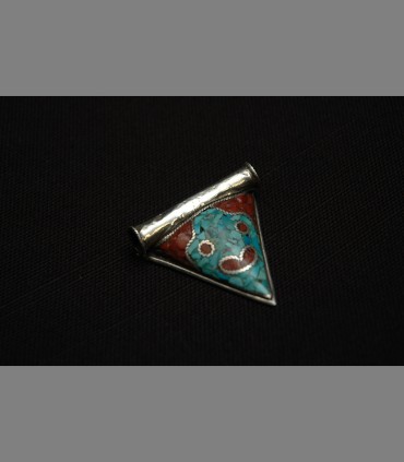 Antique Tibetan pendant in silver, turquoise, coral with totemic figure, Kam people, Northern Tibet