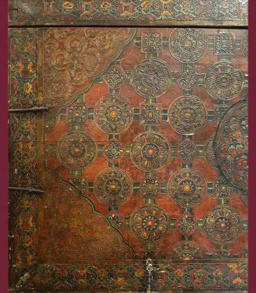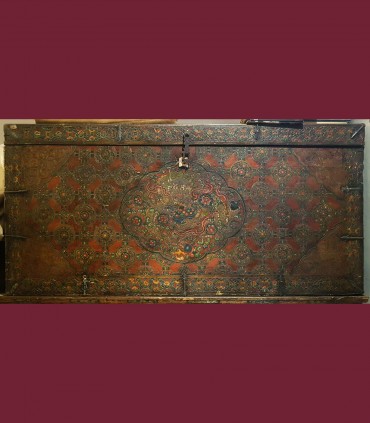 Antico baule con raffigurazione di drago e tessitura Gansu.