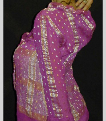 Top scollato, in chiffon di seta broccato, scollo a barchetta ampio.