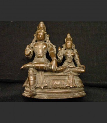 Gruppo in lega di rame eseguito con tecnica di fusione a cera persa raffigurante Shiva e Uma (Umamaheshvara), epoca Chola, India.