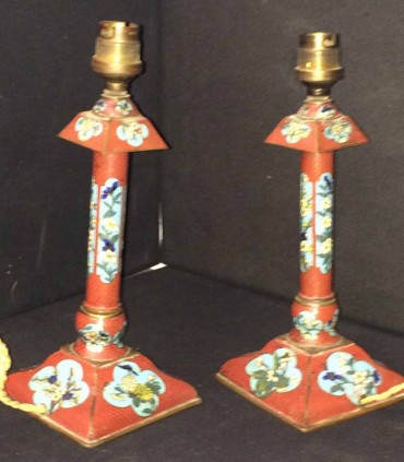 Douilles incrustées sur une base de bronze avec figures des fleurs et des oiseaux.