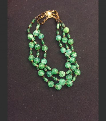 - SOLD - Ancient venetian necklace with three glass chocker threads in various size of emerald green color.