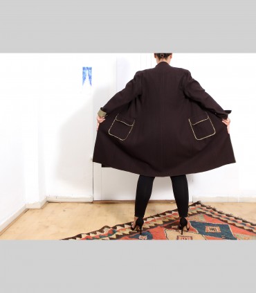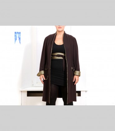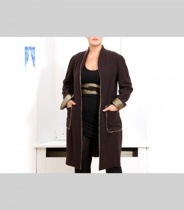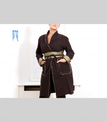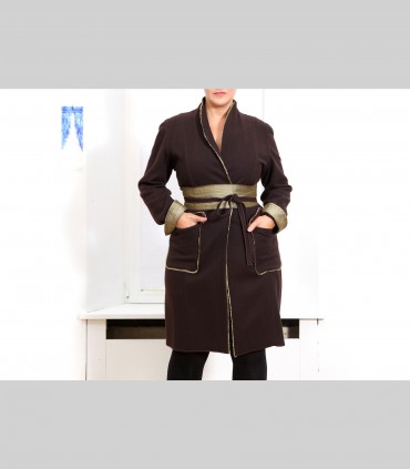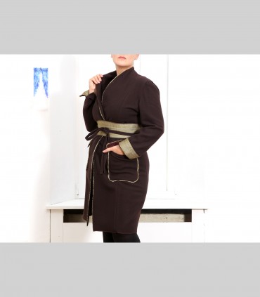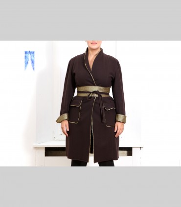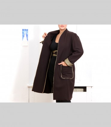 Giacca tre quarti "Libellula", in lampasso di pashmina, tecnica gabardin, finiture in taffetà di seta.