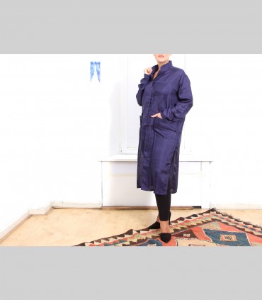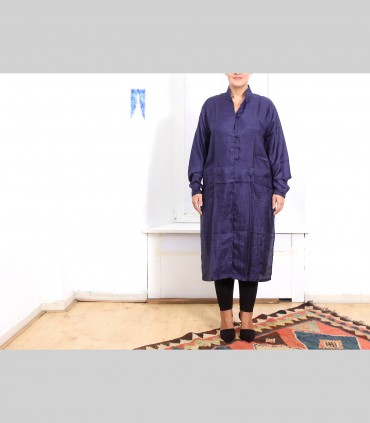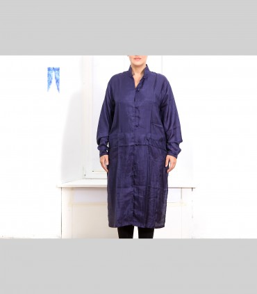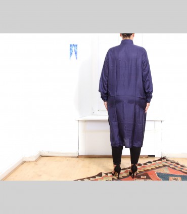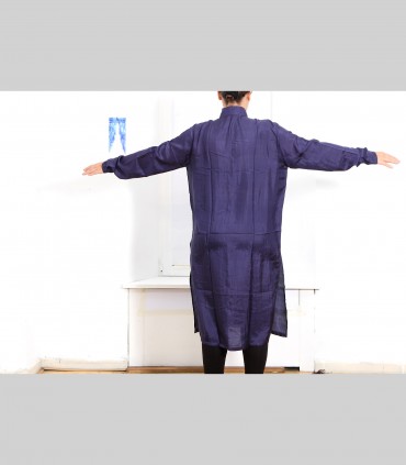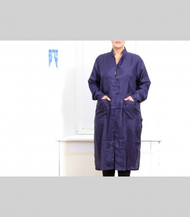 Spolverino-Casacca lunga, in tessuto di seta 21 grammi (colore blu imperiale), collo coreano, due tasche esterne.