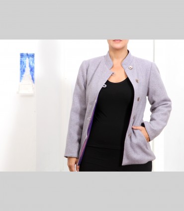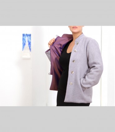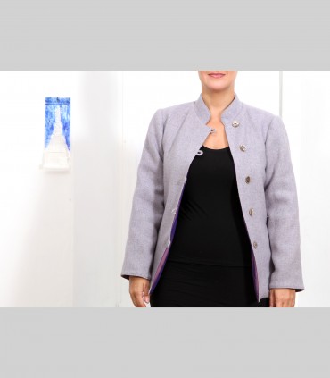 623 - Giacca double face, pashmina e taffetà di seta, collo coreano