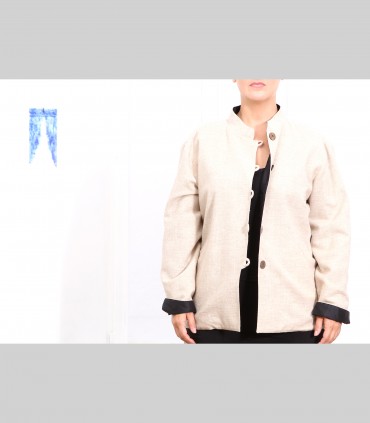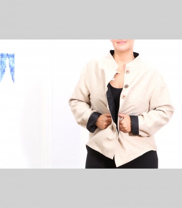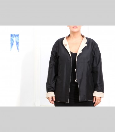 629 - Giacca double face, pashmina, shantung di seta, collo coreano