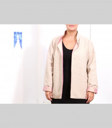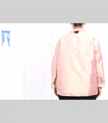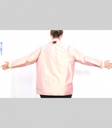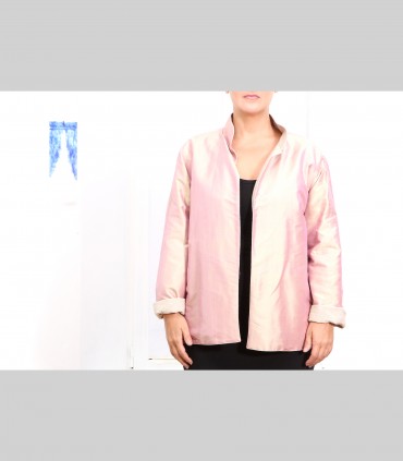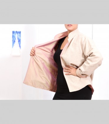 630 - Giacca double face, pashmina e taffetà di seta, collo coreano