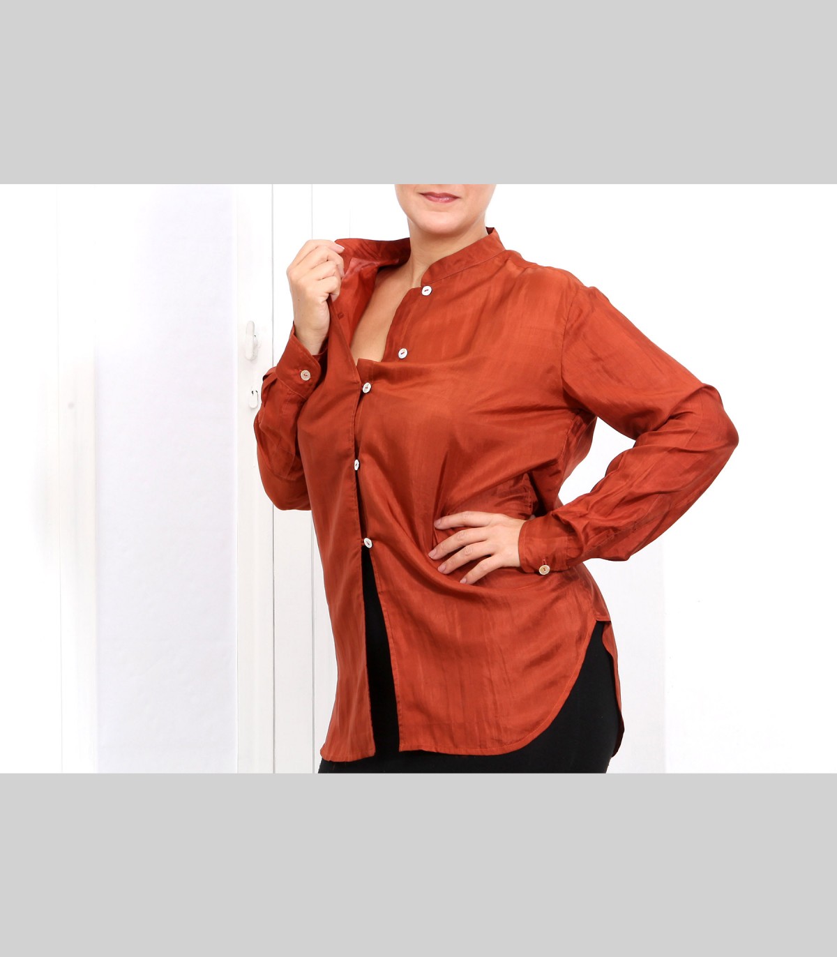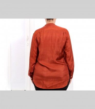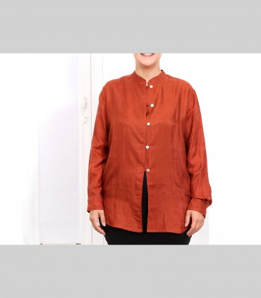 Camicia, in seta 21 grammi, collo coreano leggero, colore ruggine.