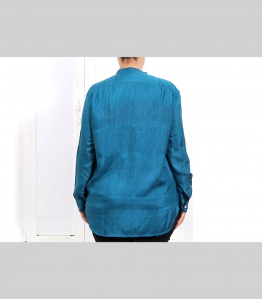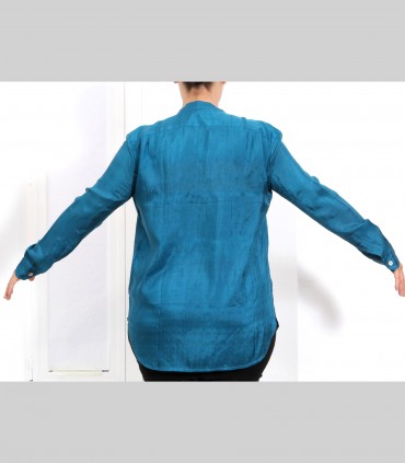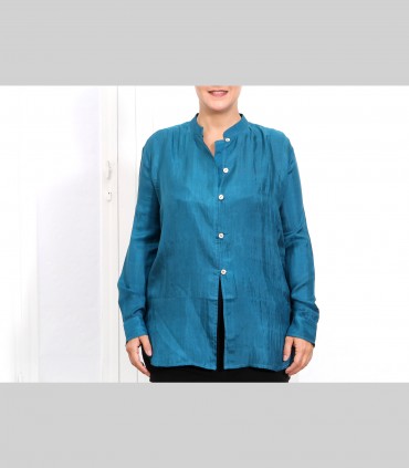 Camicia, in seta 21 grammi, collo coreano leggero, colore blu petrolio.