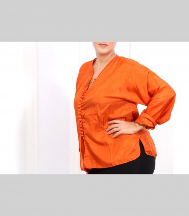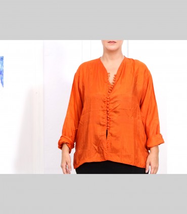 Casacca-Camicia, in seta 21 grammi, con bottoni ricoperti di seta, colore arancione.