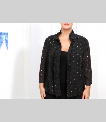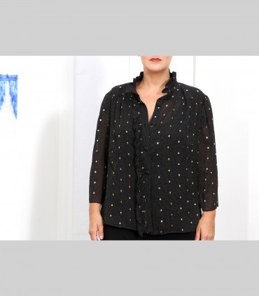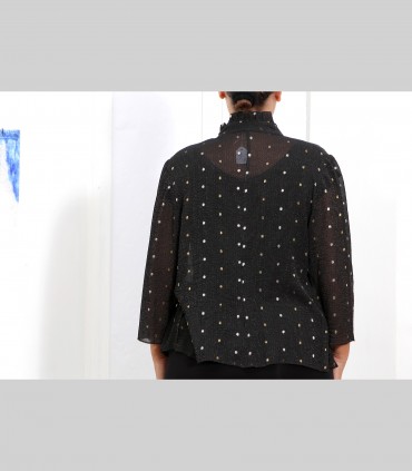 Camicia "Virgola", chiffon di seta broccato, colore nero, manica tre quarti.