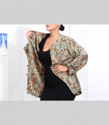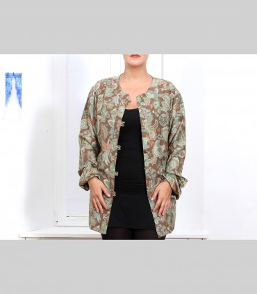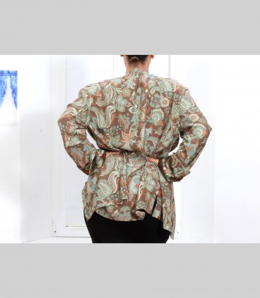 Camicia-Casacca in rasatello di seta (disegno kashmiri), con bottoni foderati, vestibilità morbida.
