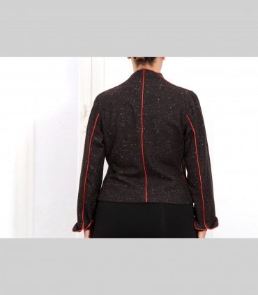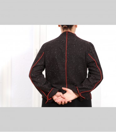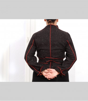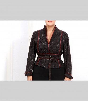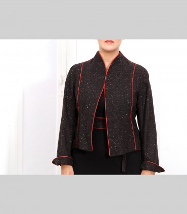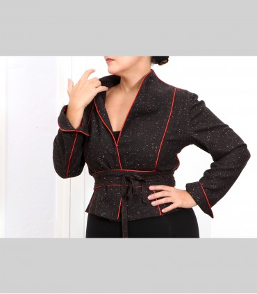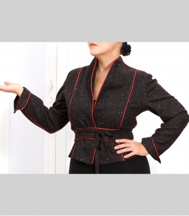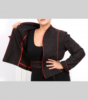 Giacca "kimono" corta, in tessuto di tasmania e fiocchi di lino, con rifiniture in seta.