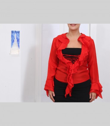 829 - Camicia "Pirò", collo con rouches, seta leggera