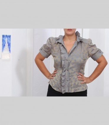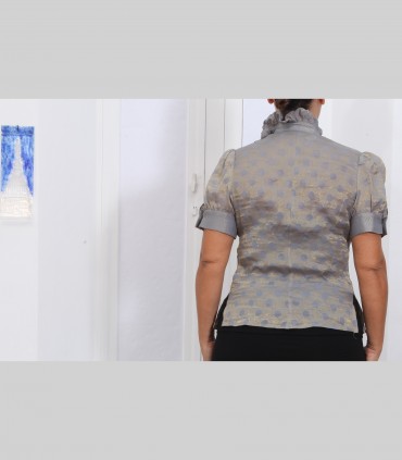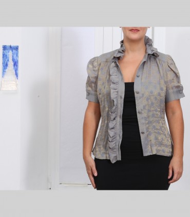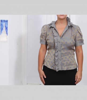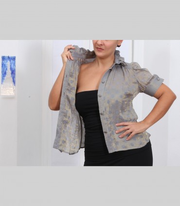 Camicia "Virgola", chiffon di seta broccato, manica corta, colore grigio.