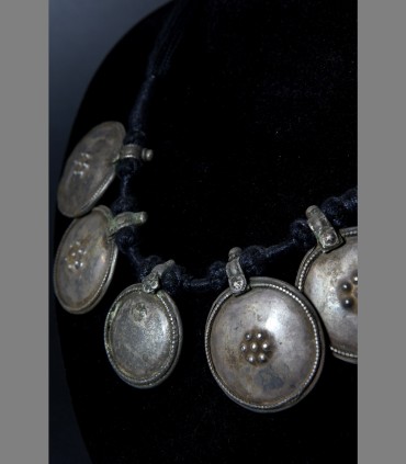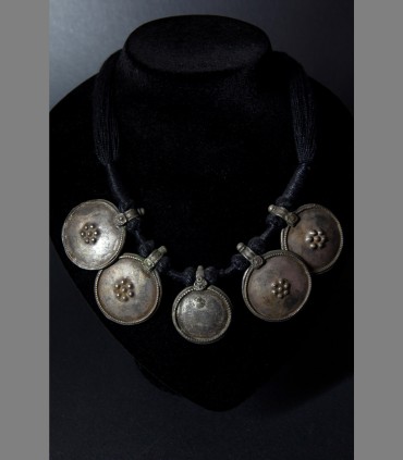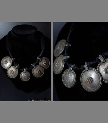 Antica collana composta da cinque pendenti a disco solare in argento eseguiti con la tecnica di fusione a cera persa, rappresenta i quattro elementi della natura ai lati, e "IO" pendente al centro. Prevalentemente utilizzato dalla popolazione di Gujarat, India nord occidentale.