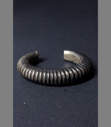 Antico bracciale in argento di manifattura thailandese, lavorazione delle popolazioni nomadi originarie dell'India, eseguito con la tecnica di fusione a cera persa.
